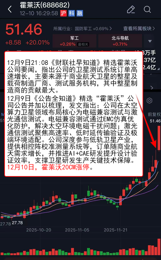 12月10日,霍莱沃20CM涨停。