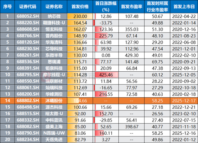 注:昂瑞微首日上市大涨(截至12月16日收盘)
