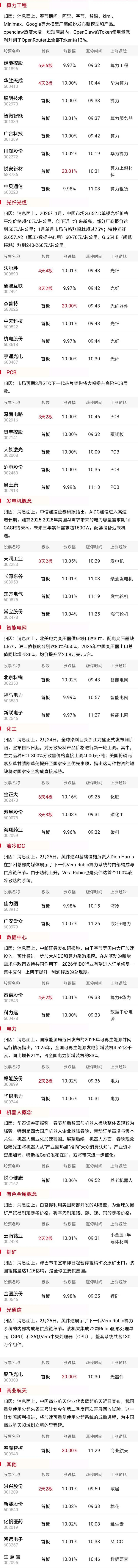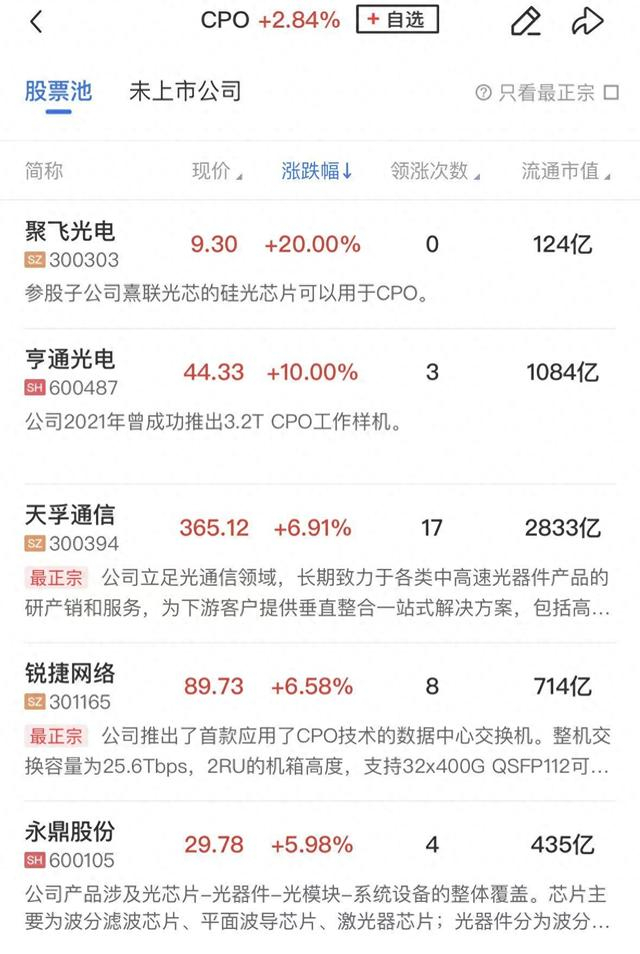 板块上,算力硬件股全线爆发,PCB、CPO集体走强,杰普特、聚飞光电、中天科技、亨通光电、沪电股份、广合科技涨停,天孚通信、明阳电路、东山精密、胜宏科技、鹏鼎控股、生益科技涨幅居前。