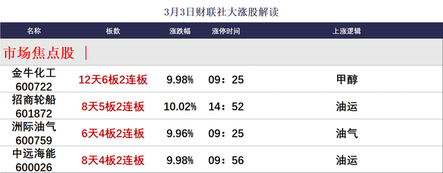 随着中东局势演绎成直接军事冲突,全球能源市场供给遭遇冲击,全球最大天然气生产商卡塔尔旗下能源设施遭遇袭击,引发欧洲天然气期货价格单日一度飙升50%,亚洲LNG价格指标JKM也单日暴涨逾50%。油气股持续站上风口,“三桶油”创历史走出2连板,其中中国石油继2008年9月以来再度收获2连板,随着北交所科力股份实现连板晋级,引发石油、天然气、油气设服等相关板块合计超50股涨停。而油气产业链的持续火爆,带动午后煤炭、煤化工等方向也展开补涨。不过除去甲醇概念股金牛化工连续2日一字涨停外,包括宝丰能源、潞化科技等煤化工个股午后冲板后仍遭遇大分歧,因此整个能源涨价线在连续展开涨停潮后的巨大获利盘的消化仍尚需时日。