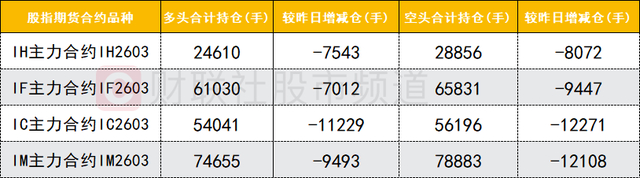 四大期指主力合约中,IH、IF、IC、IM合约多空双方均减仓,IF、IM合约空头减仓数量较多。