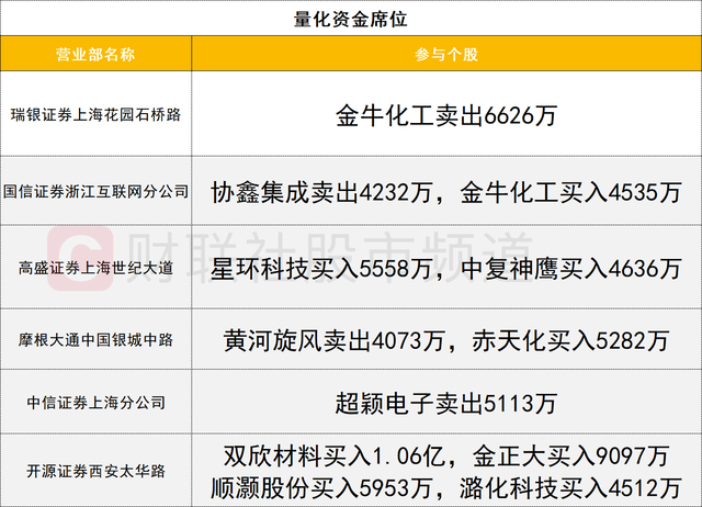 量化资金活跃度明显降低,次新股叠加化工属性的双欣材料今日涨停,获开源证券西安太华路营业部买入1.06亿。