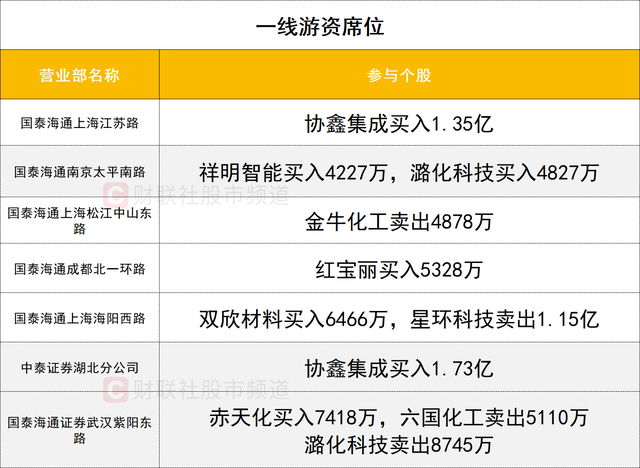 一线游资活跃度一般,协鑫集成强势涨停,获两家一线游资(中泰证券湖北分公司、国泰海通证券上海江苏路)分别买入1.73亿、1.35亿,同时深股通买入1.19亿。