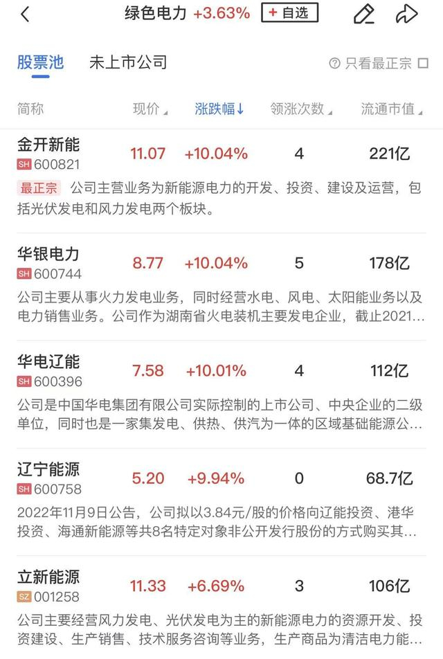绿电概念持续走强,华电辽能7连板,韶能股份5天4板,辽宁能源2连板,迪森股份、华银电力、华光环能、中利集团等个股涨停。
