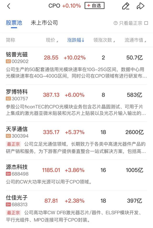 算力硬件股维持强势,铭普光磁走出6天3板,智立方、长盈通、罗博特科、天孚通信、炬光科技等个股涨幅居前。源杰科技续创新高,市值突破千亿。