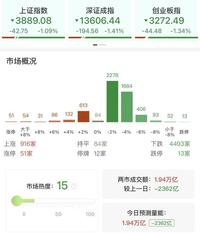 今日市场震荡走低,最终三大指数均跌超1%,两市成交额大幅萎缩,已不足2万亿。在连续两日普涨反弹后,由于跟进买盘不足而再度回落也在情理之中,对于后市沪指而言3800点附近依旧是重要点位,只要不将其有效跌破,便有望维持震荡筑底的走势。另外从盘面维度来看,今日市场热点仍以弱势轮动为主,除了资金抱团电力股以外,其余方向的延续性往往相对一般。市场若想要真正止跌企稳的话,仍需能够与指数形成共振的领涨方向,届时应对上再行跟随介入或具更高胜率。