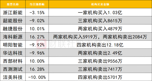 今日龙虎榜机构活跃度一般,西部材料遭三家机构卖出9556万,另一只商业航天概念股西测测试遭三家机构卖出7417万。明阳智能遭四家机构大幅卖出12.18亿。