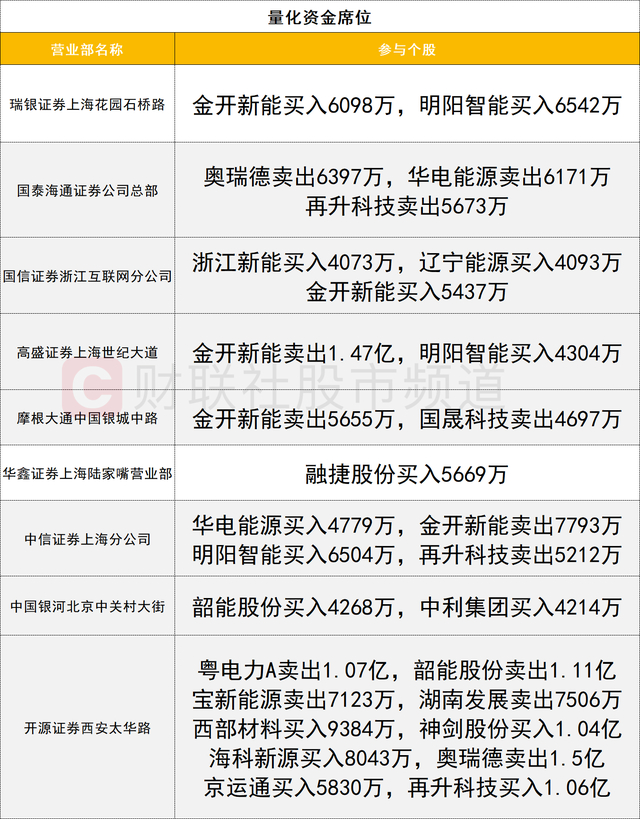 量化资金活跃度有所提升,商业航天概念表现活跃,西部材料获一家量化资金(开源证券西安太华路)买入0.93亿;神剑股份获该席位买入1.04亿。