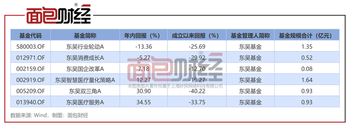 根据不完全统计,截至2025年12月16日(下同),东吴基金在管的6只公募产品(初始基金口径)成立以来净值仍处于浮亏。