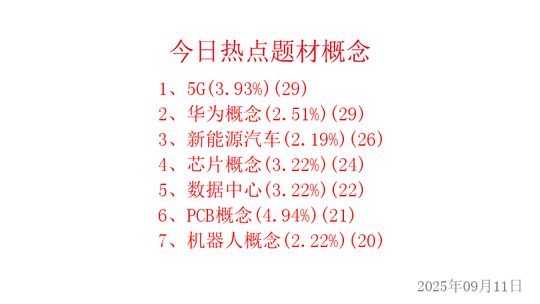 做主线,抓龙头!今天是2025年09月11日,我们来复盘和梳理今日的热点题材概念主线。