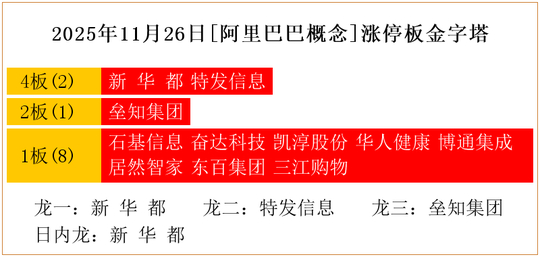 2025年11月26日[阿里巴巴概念]涨停板金字塔