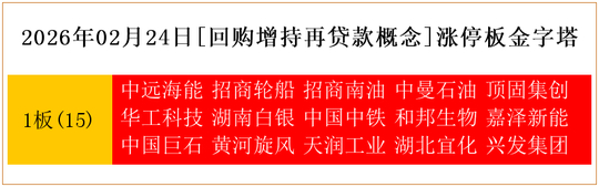 一共有15支个股涨停。其中,中远海能、招商轮船、招商南油、中曼石油、顶固集创、华工科技、湖南白银、中国中铁、和邦生物、嘉泽新能、中国巨石、黄河旋风、天润工业、湖北宜化、兴发集团1板。