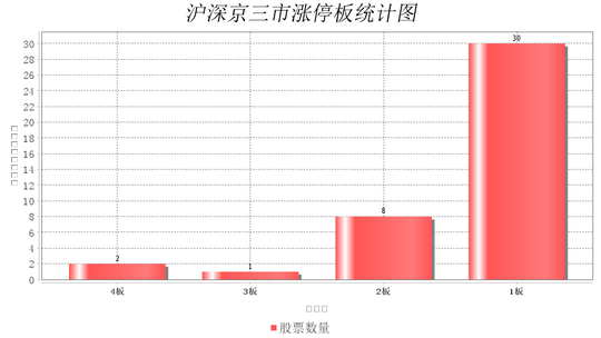 4板共2支,3板共1支,2板共8支,1板共30支,市场当前最高板为4连板!