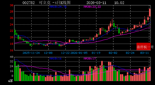 6、可立克(002782)(10.02%)