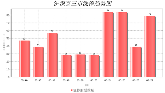 今日沪深京三市一共79支股票涨停,较上一个交易的39支增加40支。
