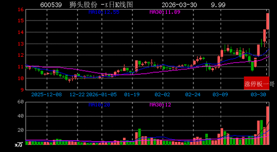2、狮头股份(600539)(9.99%)
