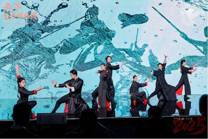 “镇青春”篇章现场“镇青春”篇章在无界融合的舞台表演和短视频中展开画卷。《舞界》以中外经典曲目《梁祝》化蝶入舞,转而太极、咏春刚柔并济,重塑“东方美学”的艺术表达。《艺尚拾年》以气势磅礴的画面、温情细腻的描述,展现了艺尚小镇十年发展之路。