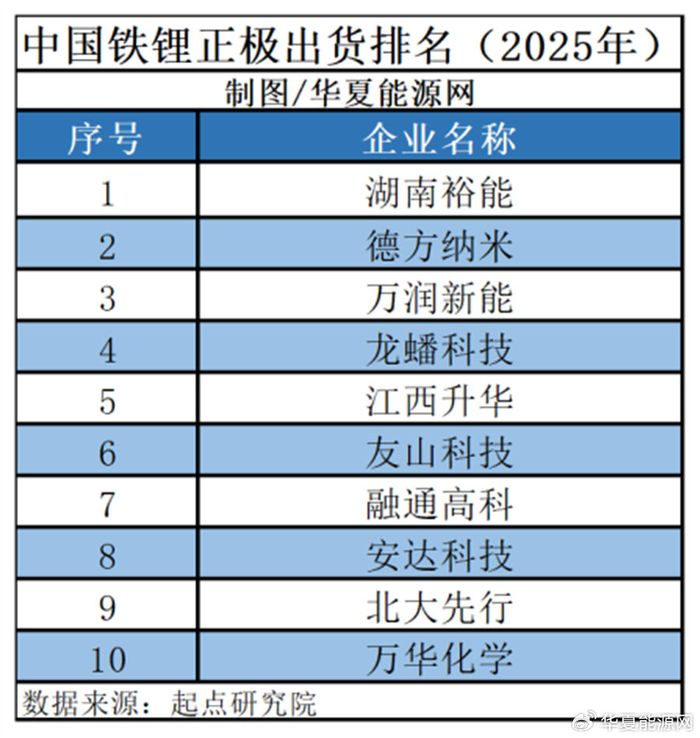 不久前,起点研究院SPIR发布的《2026全球锂电行业白皮书报告》显示,万华化学已经位列2025年中国锂电磷酸铁锂正极材料出货十强。
