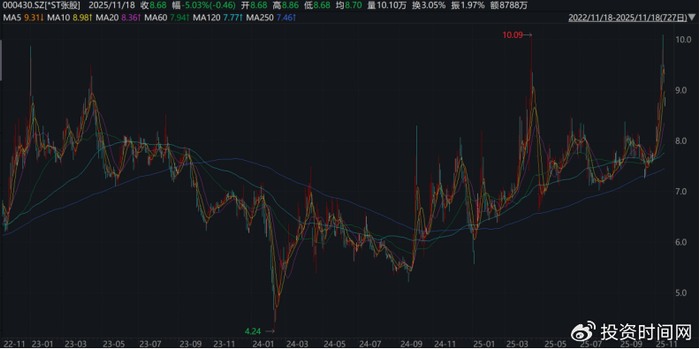 受此影响,张家界股票自2025年11月5日复牌交易起被实施退市风险警示,股票简称改为“*ST张股”。公司提示,若重整计划未能顺利实施或执行完毕,则存在因重整失败而被宣告破产的风险。11月5日复牌之后,张家界股票节节攀升,但11月17日、18日,该股连续两日跌停。