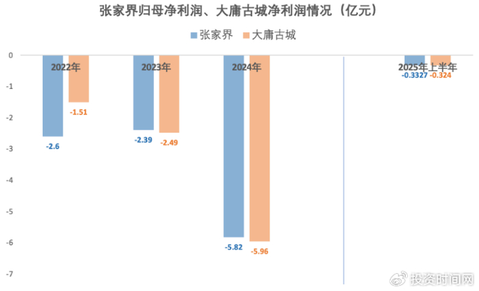 2025年上半年,张家界亦有部分子公司处于亏损状态,如张家界易程天下环保运有限公司、张家界国际大酒店有限公司、张家界大庸古城发展有限公司(下称大庸古城)等,净亏损额在百万元至千万元规模不等,其中,大庸古城净亏损达3240.04万元。