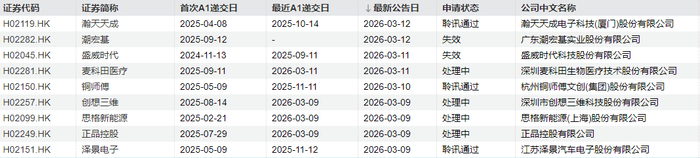 瀚天天成电子科技(厦门)股份有限公司、杭州铜师傅文创(集团)股份有限公司、江苏泽景汽车电子股份有限公司等聆讯通过。