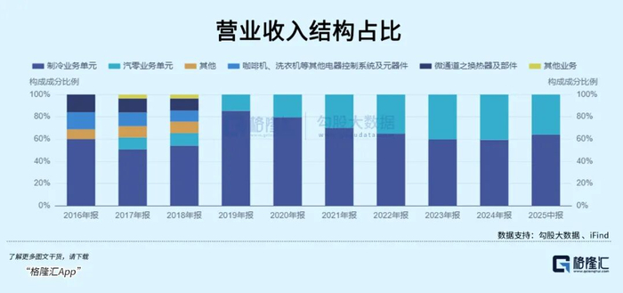 数据最能说明问题:2017年,汽车零部件业务在公司总营收中的占比尚不足20%;而到了2024年,这一比例已经攀升至40%以上。