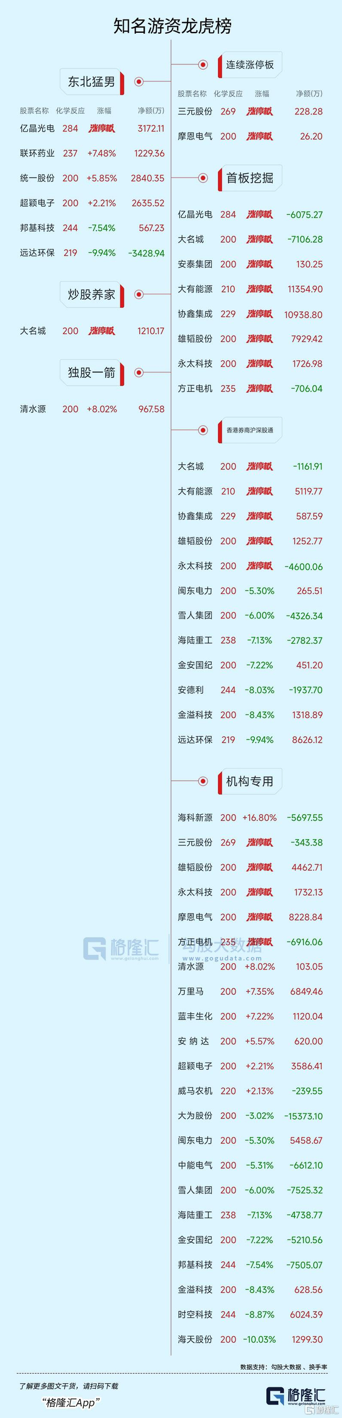 温州帮:净买入协鑫集成3196万元,净卖出炬华科技5046万元、大名城5519万元