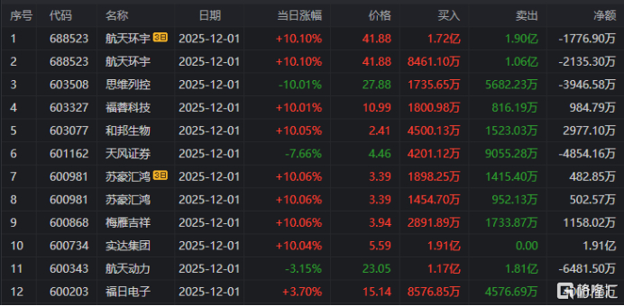 T 王:净买入航天动力 7560 万、航天环宇2296万,净卖出郑中设计2133万、榕基软件2762万、实达集团3558万、天风证券5161万