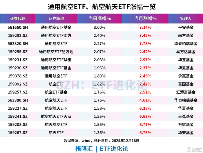 通用航空ETF基金涨3%;通用航空ETF南方、通用航空ETF、通用航空ETF易方达、通用航空ETF华宝涨超2%;通用航空ETF基金、通用航空ETF、航空ETF、航空ETF基金、航空航天ETF、航空航天ETF天弘、航天航空ETF、航天ETF上涨。