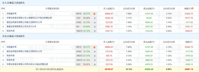 格隆汇2月24日|此前两连板跌停的巨力索具(002342.SZ)今日续跌1.48%,换手率33.38%,成交额48.31亿元。龙虎榜数据显示,深股通买入3.67亿元,卖出1.31亿元,净买入2.36亿元;三家机构买入7351亿元,卖出1.45亿元,净卖出7101万元。上榜席位全天买入6.82亿元,卖出4.32亿元,合计净买入2.5亿元。(格隆汇)
