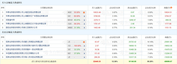 格隆汇3月6日|合力泰(002217.SZ)今日跌8.16%,换手率9.3%,成交额18.13亿元。龙虎榜数据显示,游资“温州帮”位列卖一席位,净卖出2.57亿元;国投证券深圳深南大道本元大厦证券营业部位列卖二席位,净卖出1.97亿元。上榜席位全天买入2.24亿元,卖出9.11亿元,合计净卖出6.87亿元。(格隆汇)
