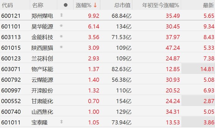 格隆汇3月13日|A股市场煤炭股多数上涨,其中,郑州煤电涨停,昊华能源涨超6%,金能科技、陕西黑猫涨超3%,兰花科创涨近3%。消息面上,长江证券测算显示,若霍尔木兹海峡长期封锁,全球电力用煤需求可能年化增加8486万吨;若我国煤化工装置满负荷运行,仅此一项便将拉动国内煤炭消费近5000万吨。