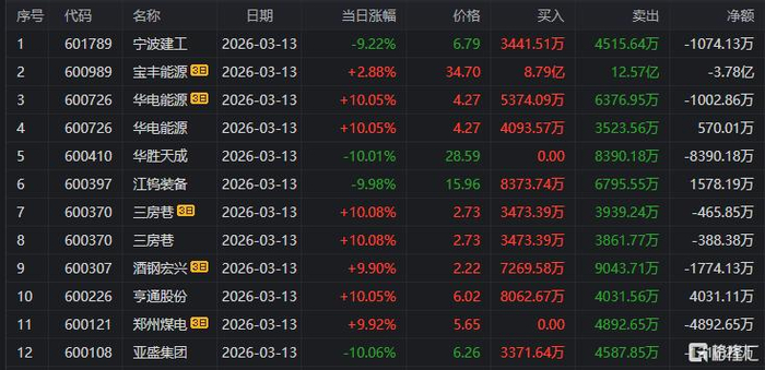 山东帮:净卖出华电能源2736万元