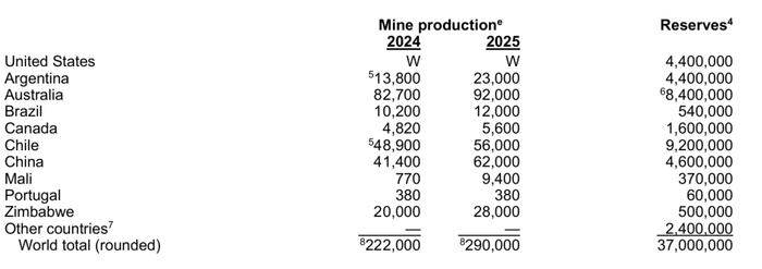 图片来源:USGS海关总署最新数据显示,2025年中国进口锂矿775.06万吨。其中,津巴布韦的来矿量约为120.41万吨,占总进口量的15.54%。