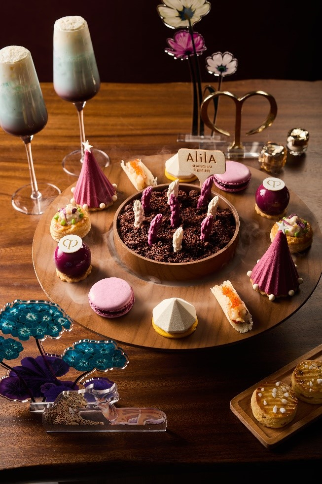阿丽拉上海与CPB肌肤之钥达成合作,以“光感谧境”为主题,推出季节主题下午茶。以CPB肌肤之钥钻石美学为灵感,结合阿丽拉自然谧境的空间特质,通过甜点造型与食材层次展现光感变化。咸点系列包括波士顿龙虾芝士卷、火鸡甜豆塔及鹅肝黑加仑马卡龙;甜点部分则通过开心果慕斯、圣诞橙花味慕斯、栗子黑加仑慕斯等作品,以几何造型与层次质感呼应主题。现烤松饼与潘娜托尼冰激凌以简约设计平衡整体味觉体验。