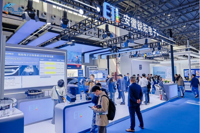 锐拓电子携带车规级Cyan LED智驾安全标识光源、百级像素ADB自适应远光智慧光源、前装经典灯具方案等产品参展。