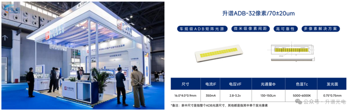 升谱光电携全系车用LED光源及智能车灯解决方案参展,重点展出的ADB矩阵式大灯LED解决方案与全气候远近光大灯解决方案。