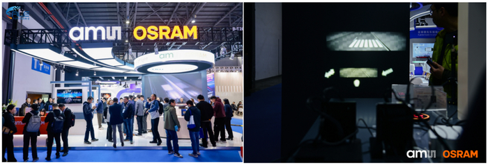 艾迈斯欧司朗展示了其在汽车信号、内外饰照明及智能前照灯领域的产品,包括ADS自动驾驶标志灯、OSIRE E3731i智能RGB、EVIYOS™ HD 25、ALIYOS™ LED-on-foil技术、OSLON® Compact PL系列、AR HUD方案等。