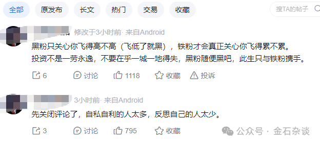 杭州新城路最新:把上午发的帖子全删了,还表示:黑粉只关心你飞得高不高(飞低了就黑),铁粉才会真正关心你飞得累不累。投资不是一劳永逸,不要在乎一城一地得失,黑粉随便黑吧,此生只与铁粉携手。