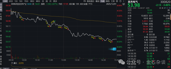 就在上午,新城路说配置了些英杰电气,而上海电力则是其主要仓位。有金石杂谈身边的朋友气急败坏的表示:杭州新城路割韭菜太恶劣了,今天直接不装了,割了太多韭菜,下一个就是英杰电气。