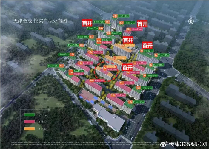 【东丽津滨大道】上东金茂锦棠 ,加推洋房7号楼,6层到顶,面积为116、142平米,均价2.3-2.7万/平米。