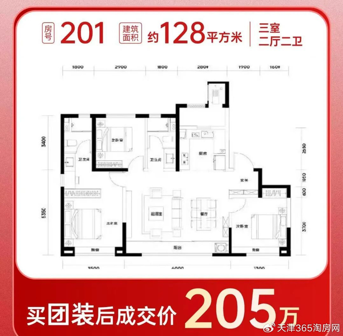 西青城投格调松蕉花园小高层128平米特惠205万。