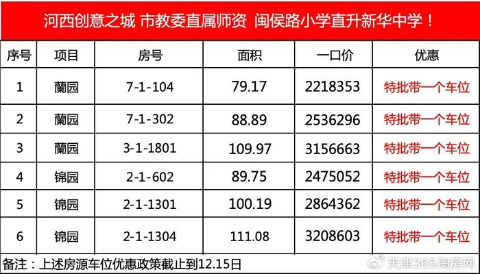 特别是南开、河西、西青热点区域,不少楼盘都给出特惠房。