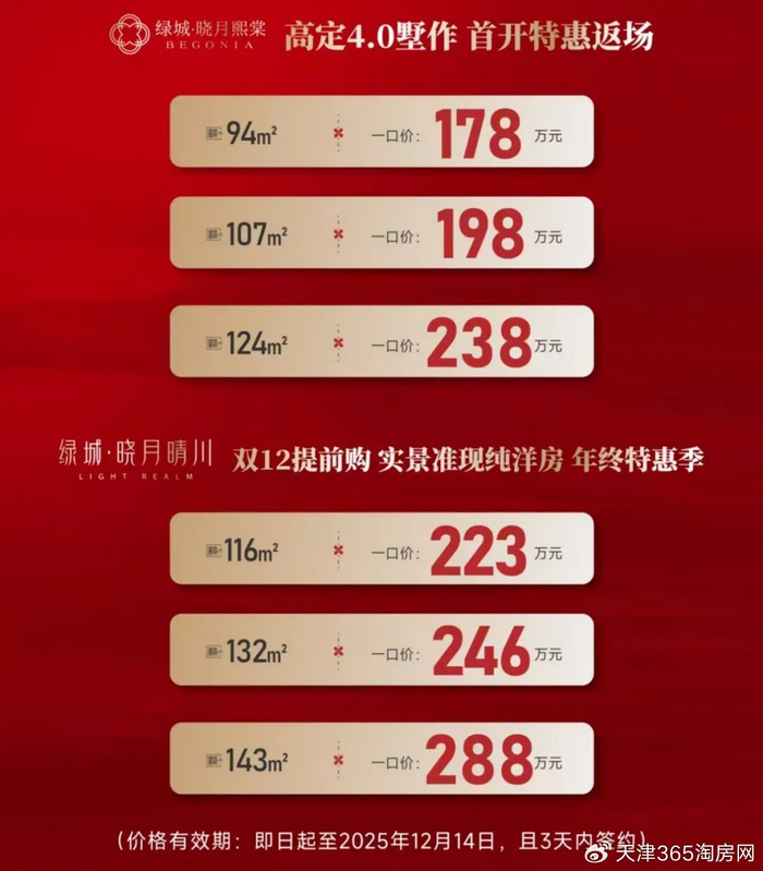 【西青李七庄】绿城晓月熙棠&绿城晓月晴川,推出6套特惠房。