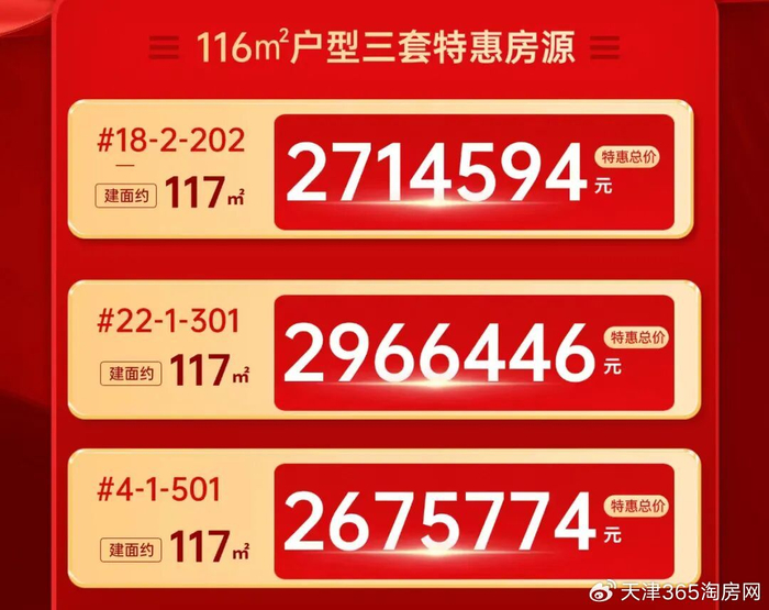 【东丽津滨大道】上东金茂锦棠,洋房116平米推出3套特惠房,总计267万起。