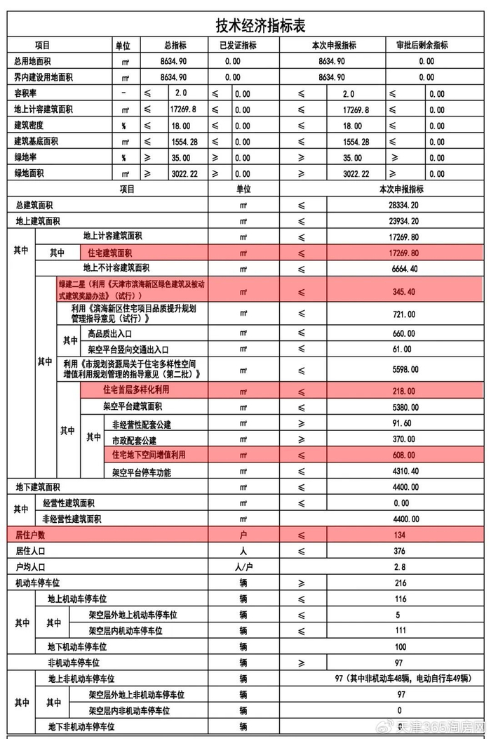 项目住宅面积为17269.8平米,奖励面积为345.4平米,住宅首层多样化利用为218平米,住宅地下空间增值利用608平米,容积率为2.0,共计有134户。