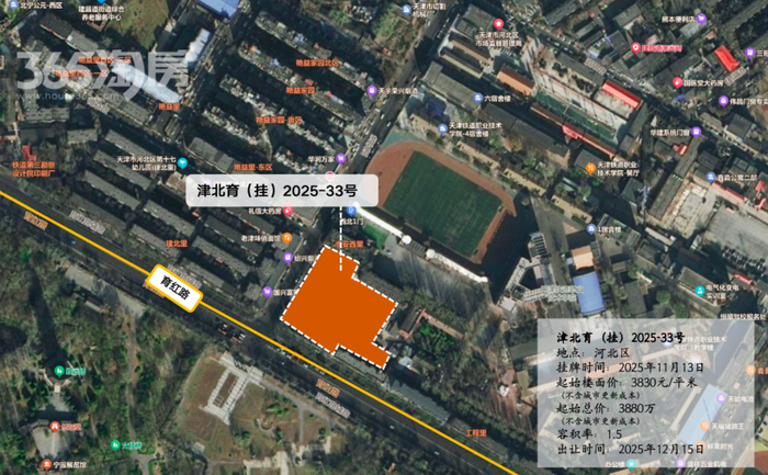 该地块位于中环线沿线,北侧为天津铁道职业技术学院,南侧为育红路,与北宁公园一路之隔。