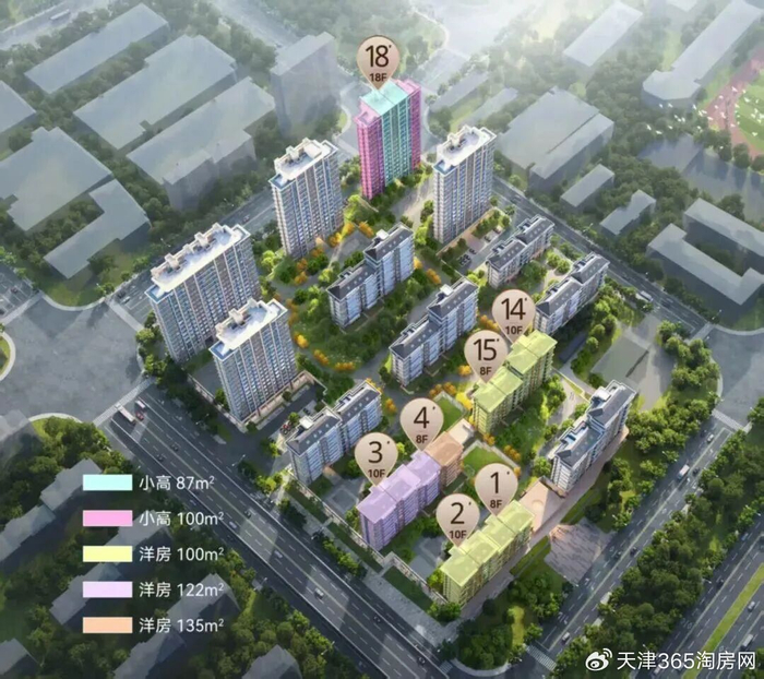 1、2、14、15号楼,8-10层到顶,面积为100平米,均价2.7-2.9万/平米;