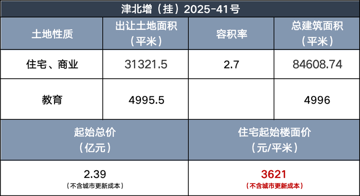 起始总价2.39亿元,折合住宅起始楼面价约为3621元/平米,均不含城市更新成本。
