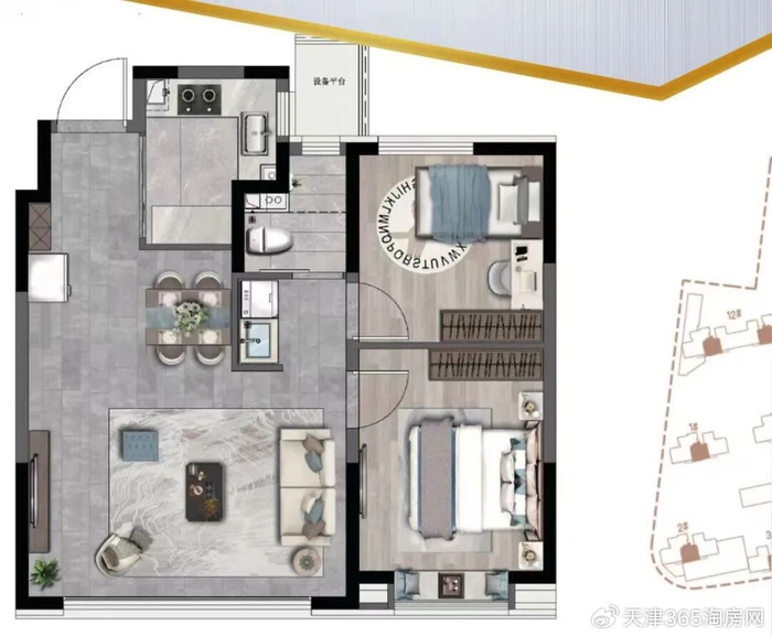 面积为53、66平米,总价34.2万起。